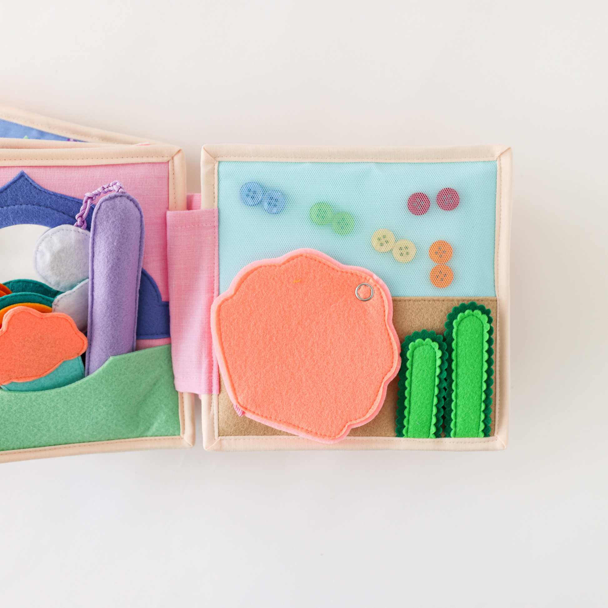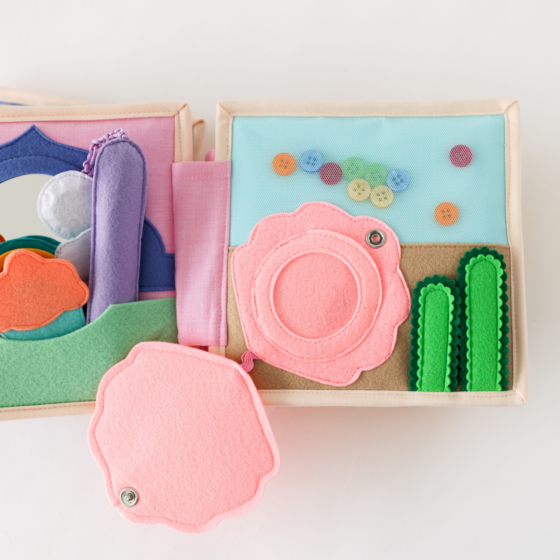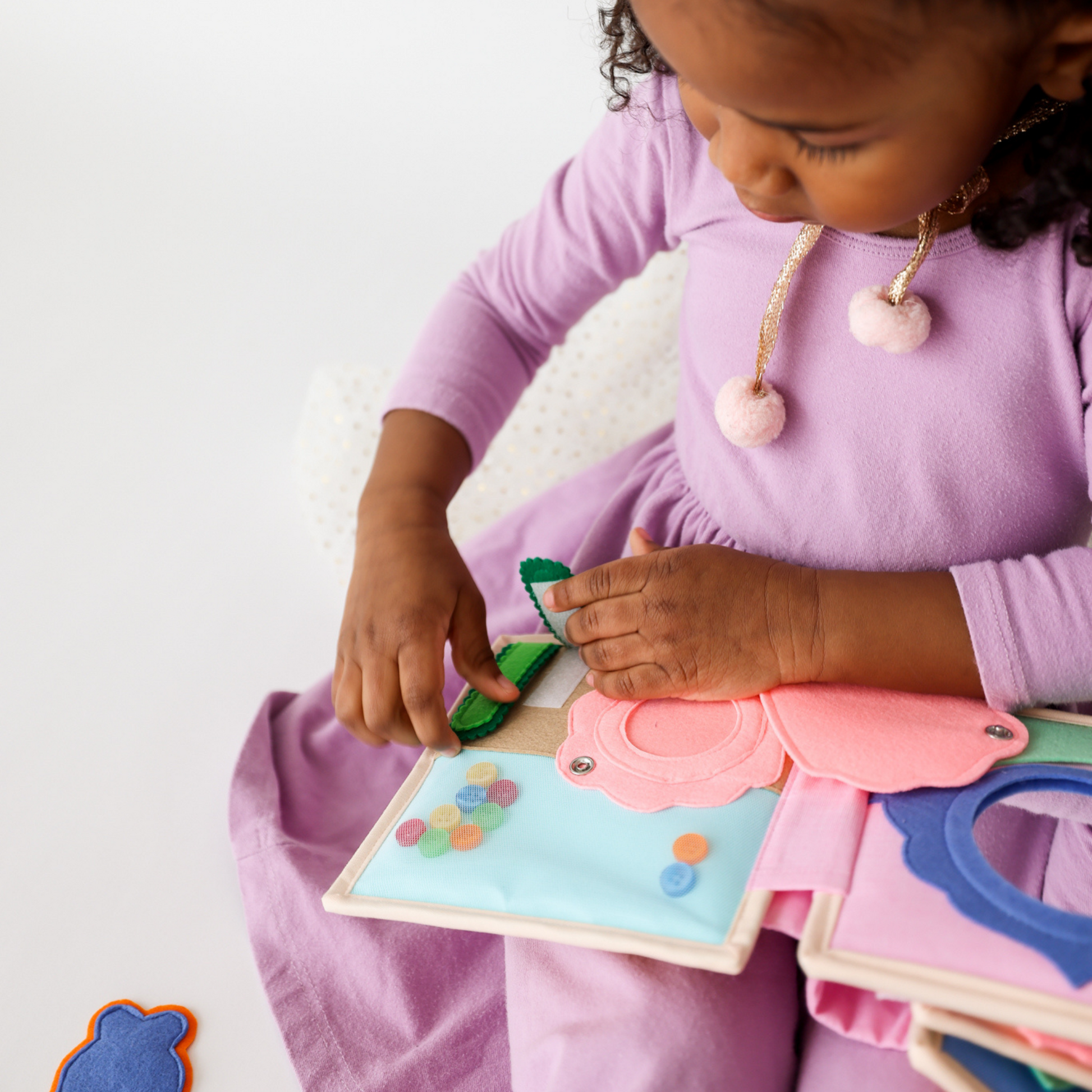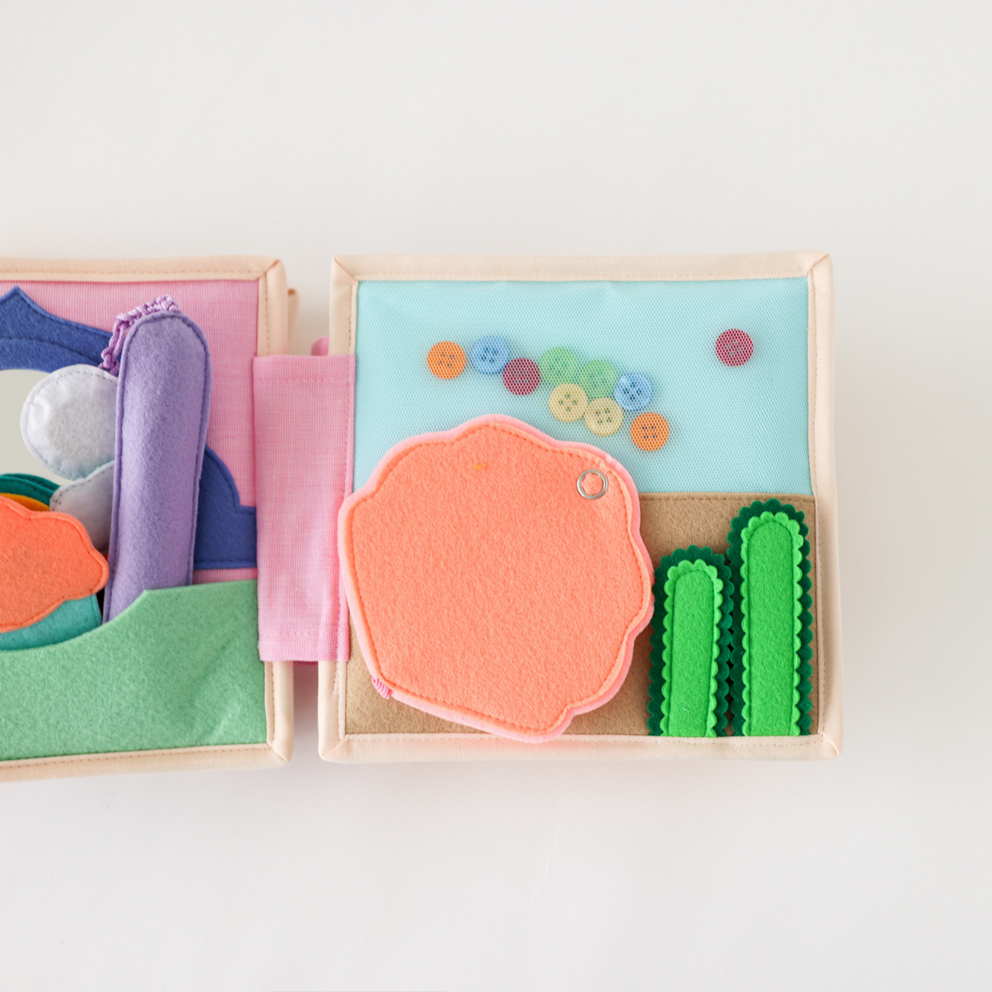 No matter where you go, every piece of your busy book can come with you. There is storage for every single piece and even any additional booster packs that you may purchase. Every book has an enclosing clasp that every child can easily use to shut their busy book and take it on the go.