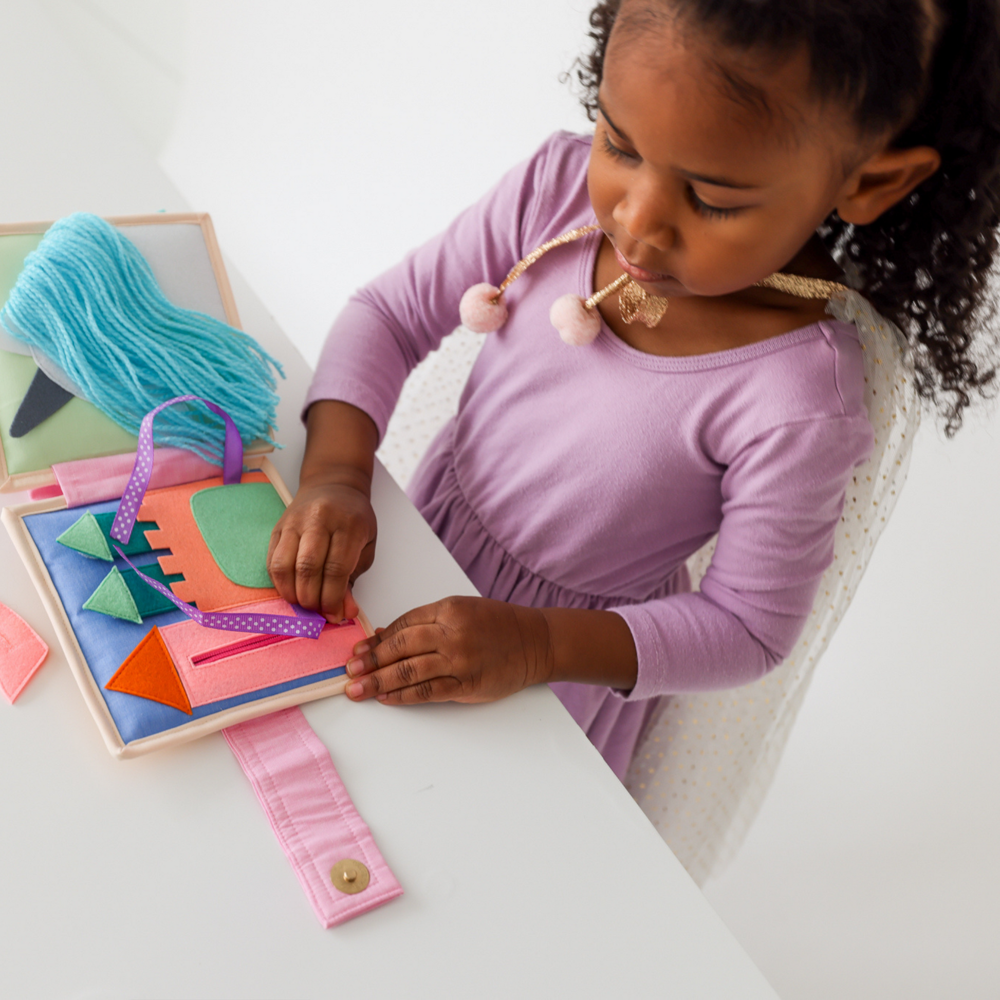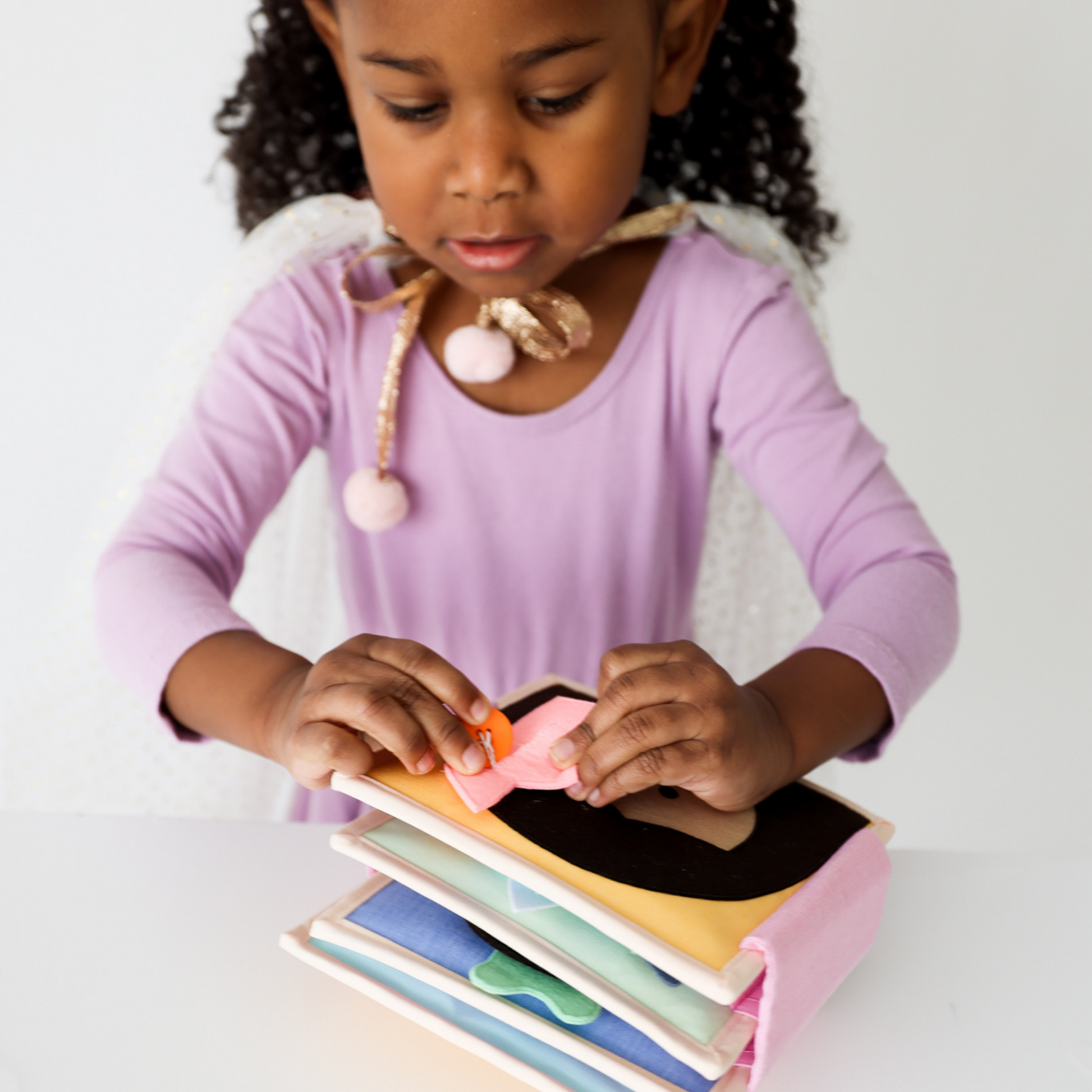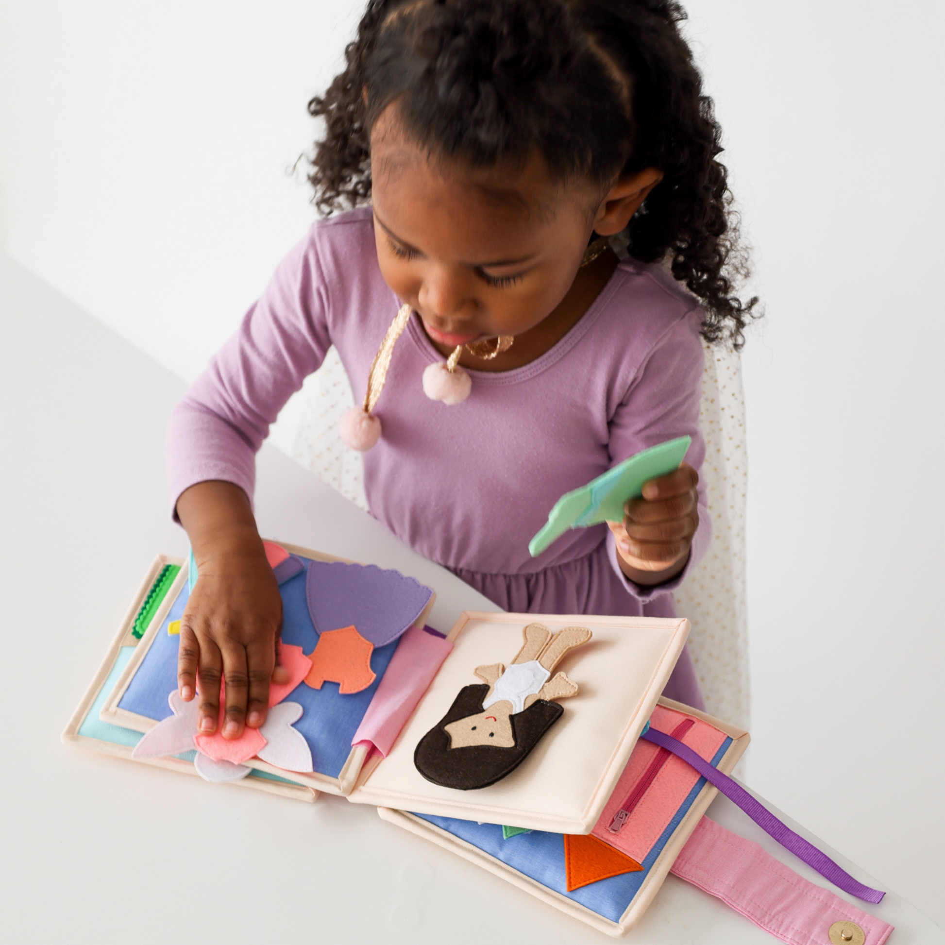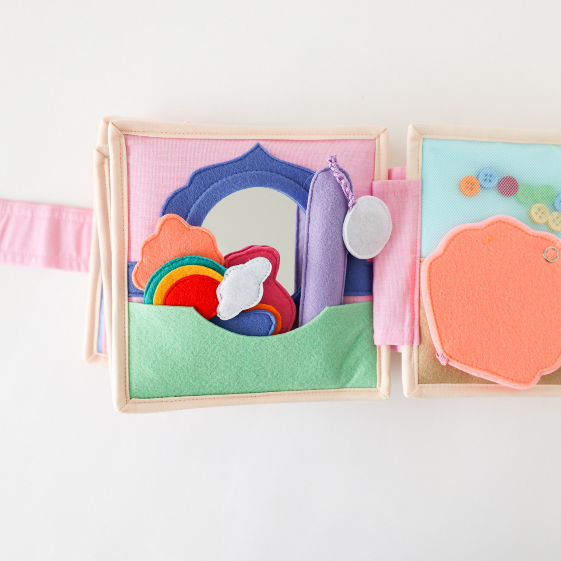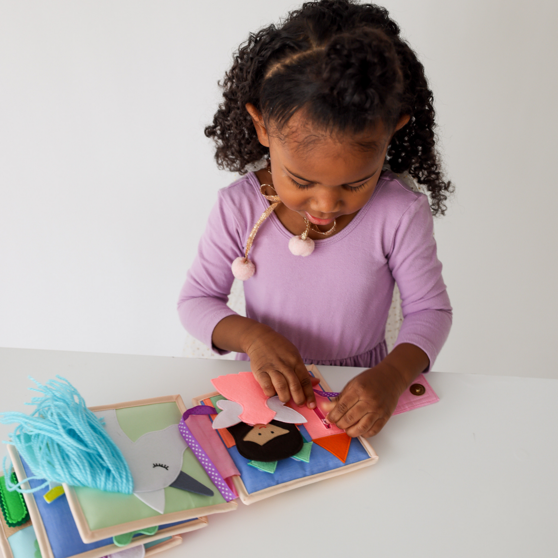 No matter where you go, every piece of your busy book can come with you. There is storage for every single piece and even any additional booster packs that you may purchase. Every book has an enclosing clasp that every child can easily use to shut their busy book and take it on the go.