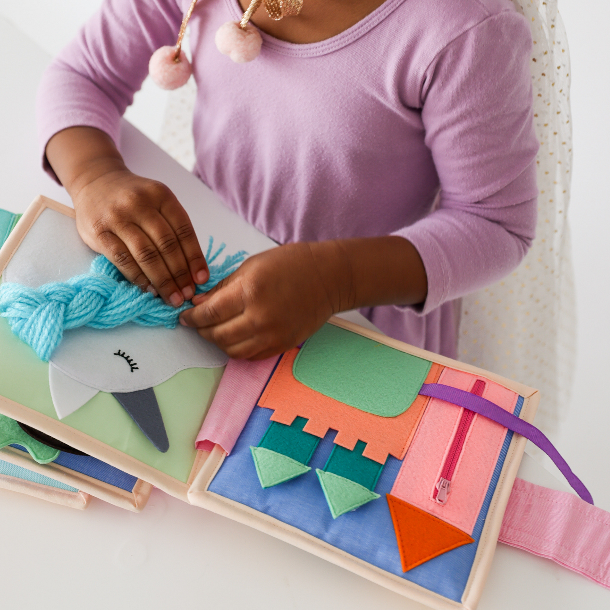 Our quiet books are completely sewn without a single drop of glue using incredible strong fiber materials. We call this heirloom quality as these books can be passed between generations.