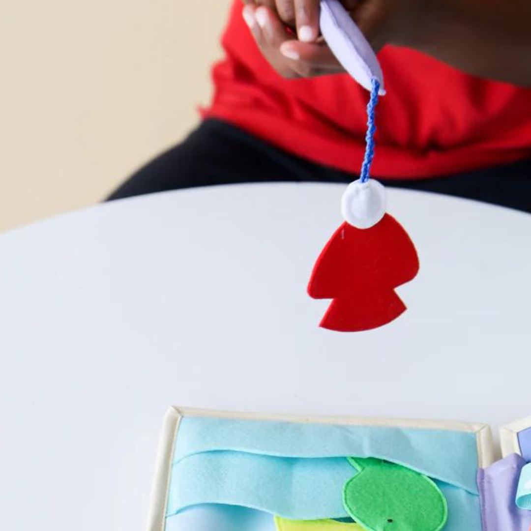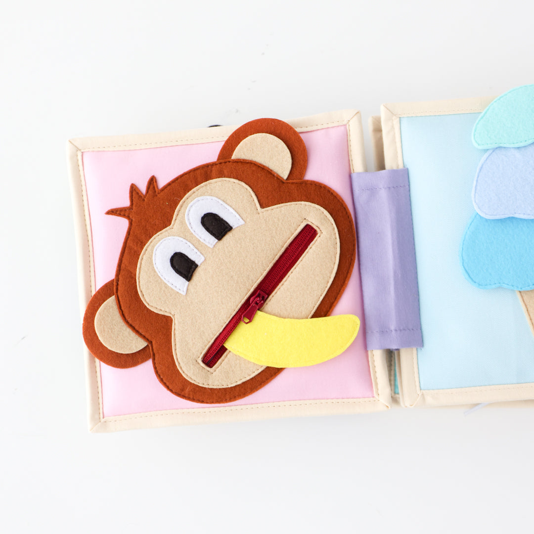 A delightful journey for little hands and curious minds! This cute-as-a-button book develops threading, hand-eye coordination and color recognition. With magnetic fishing, finger puppets with their favourite foods (matching), zippers, shading matching, small to large and an elasticated buttons, perfect for little fingers. Recommended Age: 18 months - 4 years old.
