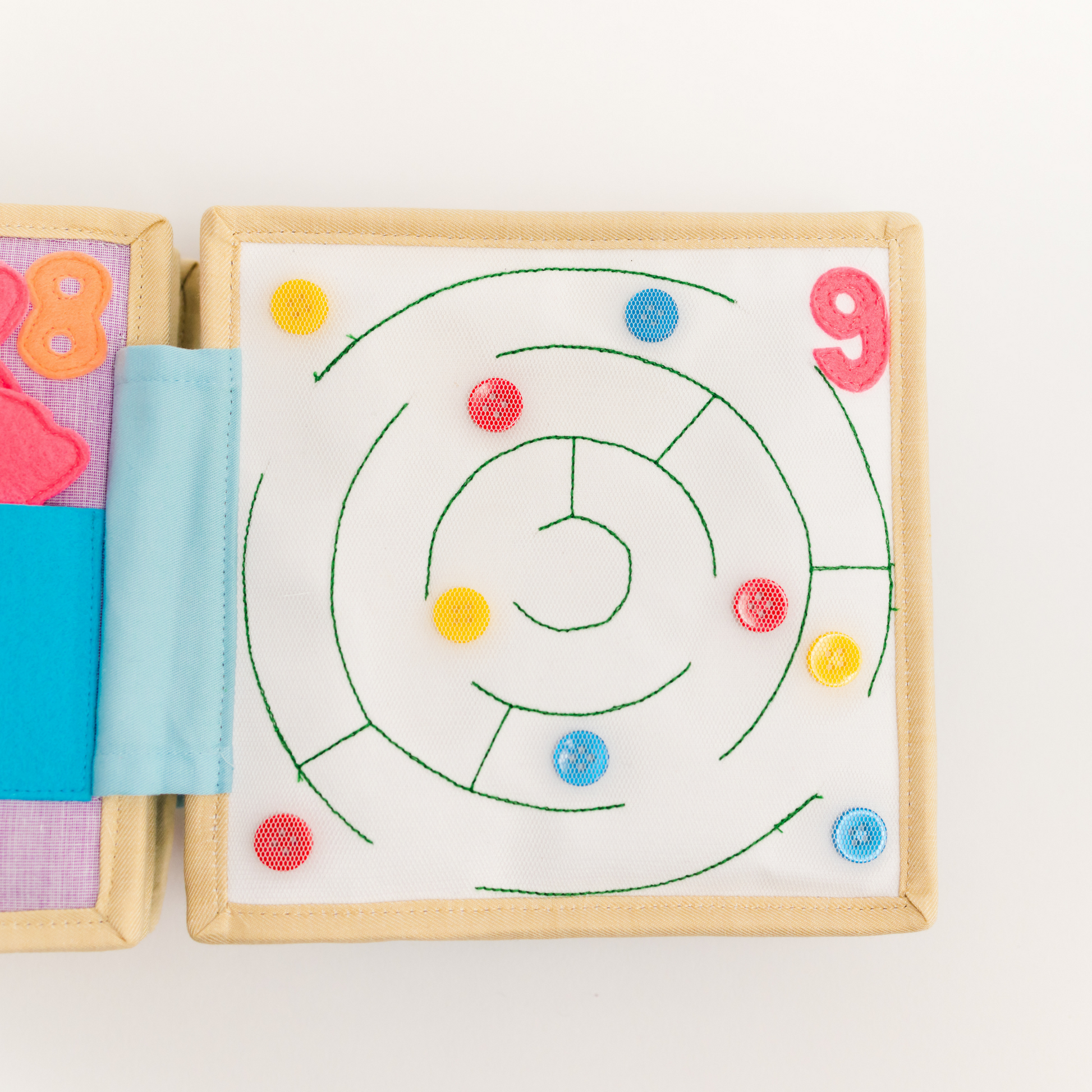 The Little Abacus Mini is packed to the brim with math and Montessori-inspired activities, helping toddlers relate numeric symbols with their corresponding quantities. This book takes children journey through the beginning of counting to more complex math problems, sequencing, fine motor challenges, shape/colour recognition, and so much more. The Little Abacus Mini also combines practical skills such as lacing, buttoning, zipping, snaps, and Velcro, all in a counting theme!