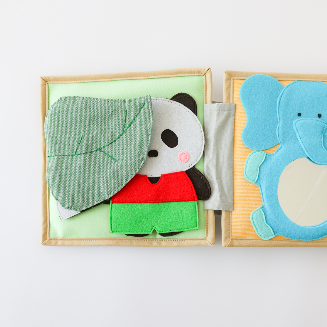 - Lift the leaf to reveal a peekaboo finger puppet panda bear! Its interchangeable green and red outfits provide a delightful contrast for developing color recognition.